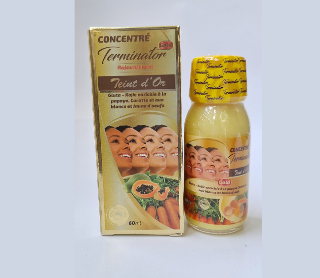 Le produit TERMINATOR Concentré Rajeunissant Teint D'or 60 millilitre (marque TERMINATOR) est identifié de manière unique par le GTIN (EAN-13) : 6171100200899, conformément aux standards GS1. Cette page constitue la fiche de référence pour l'identification normalisée de ce produit et de ses caractéristiques. La marque est la propriété de ONE PRICE SARL.