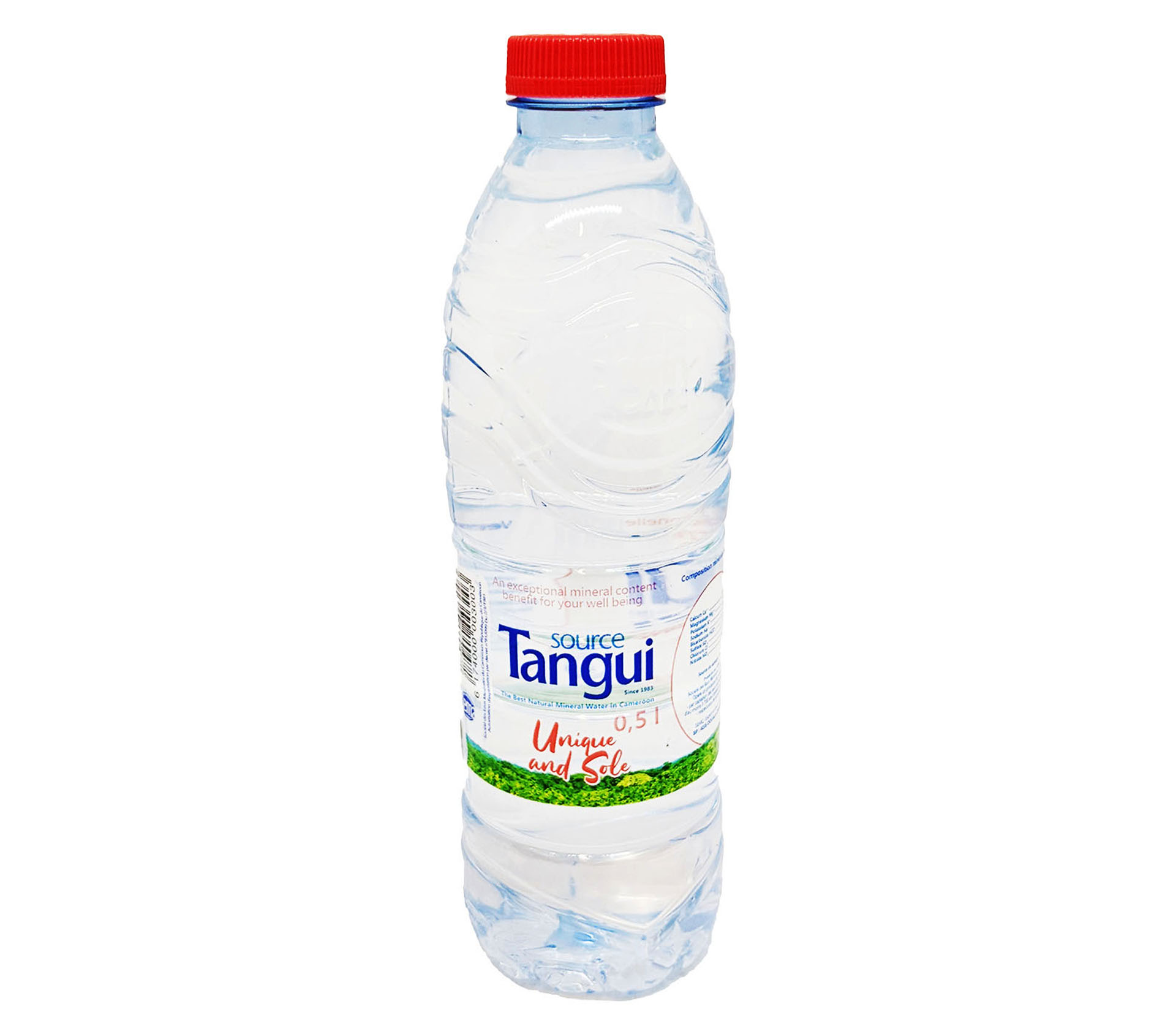 Le produit TANGUI Eau Minerale 500 Millilitre (marque TANGUI) est identifié de manière unique par le GTIN (EAN-13) : 6174000003003, conformément aux standards GS1. Cette page constitue la fiche de référence pour l'identification normalisée de ce produit et de ses caractéristiques. La marque est la propriété de SOCIETE DES EAUX MINERALES DU CAMEROUN SEMC.