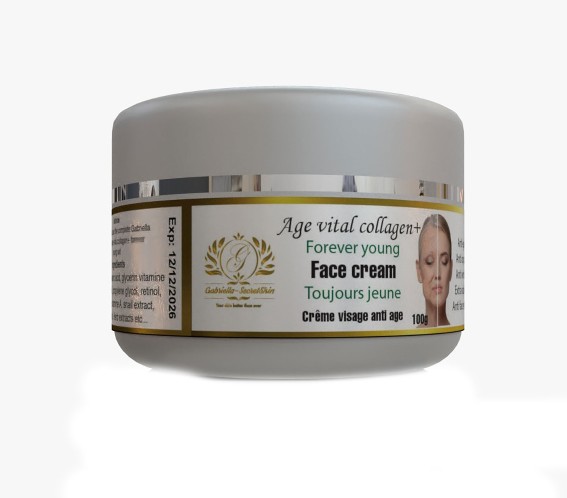 Le produit GABRIELLA SECRET SKIN COLLAGÈNE Crème Visage +Q10 60 gram (marque GABRIELLA SECRET SKIN) est identifié de manière unique par le GTIN (EAN-13) : 6174000229144, conformément aux standards GS1. Cette page constitue la fiche de référence pour l'identification normalisée de ce produit et de ses caractéristiques. La marque est la propriété de GABRIELLA-SECRETSKIN SARL.