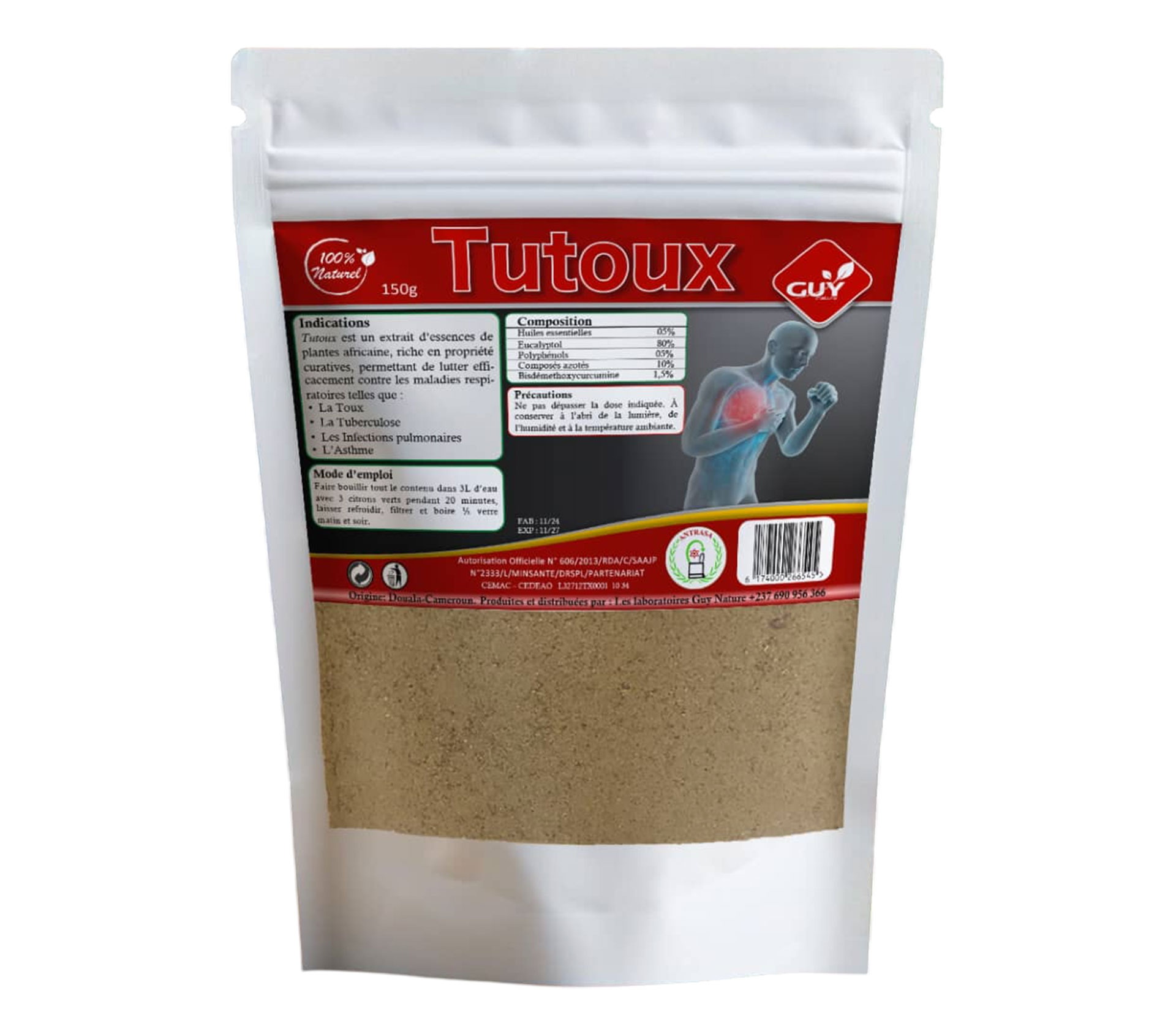 Le produit GUY NATURE Tutoux Poudre 150 gram (marque GUY NATURE) est identifié de manière unique par le GTIN (EAN-13) : 6174000266545, conformément aux standards GS1. Cette page constitue la fiche de référence pour l'identification normalisée de ce produit et de ses caractéristiques. La marque est la propriété de LABORATOIRE GUY NATURE.