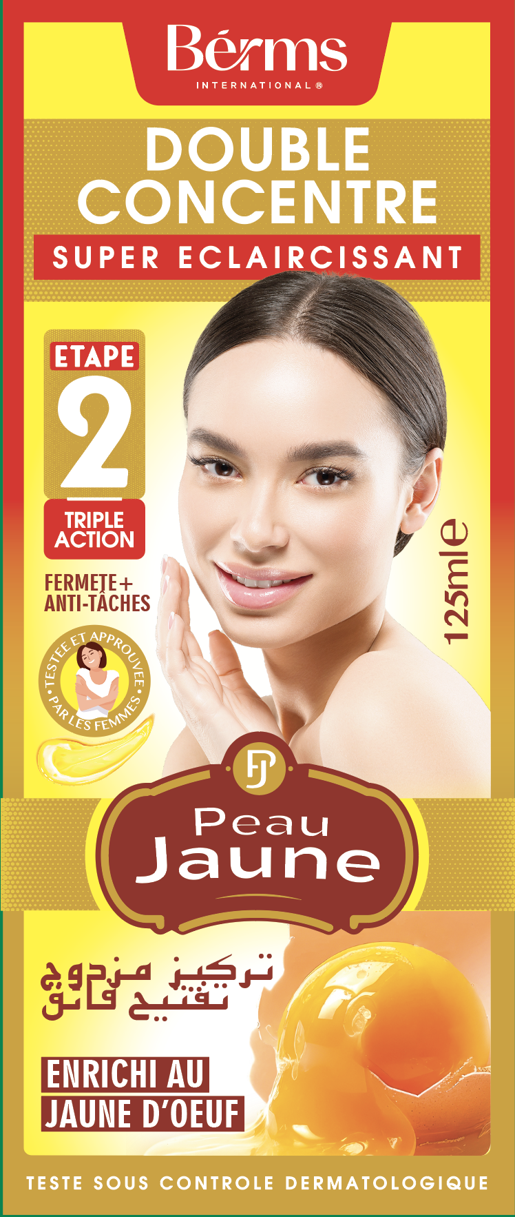 Le produit BERMS PEAU JAUNE Double Concentré super éclaircissant étape 2 enrichie au jaune d'oeuf Tripple action, anti-tâche 125 millilitre (marque BERMS) est identifié de manière unique par le GTIN (EAN-13) : 6174000270313, conformément aux standards GS1. Cette page constitue la fiche de référence pour l'identification normalisée de ce produit et de ses caractéristiques. La marque est la propriété de CCRC COSMETICS.