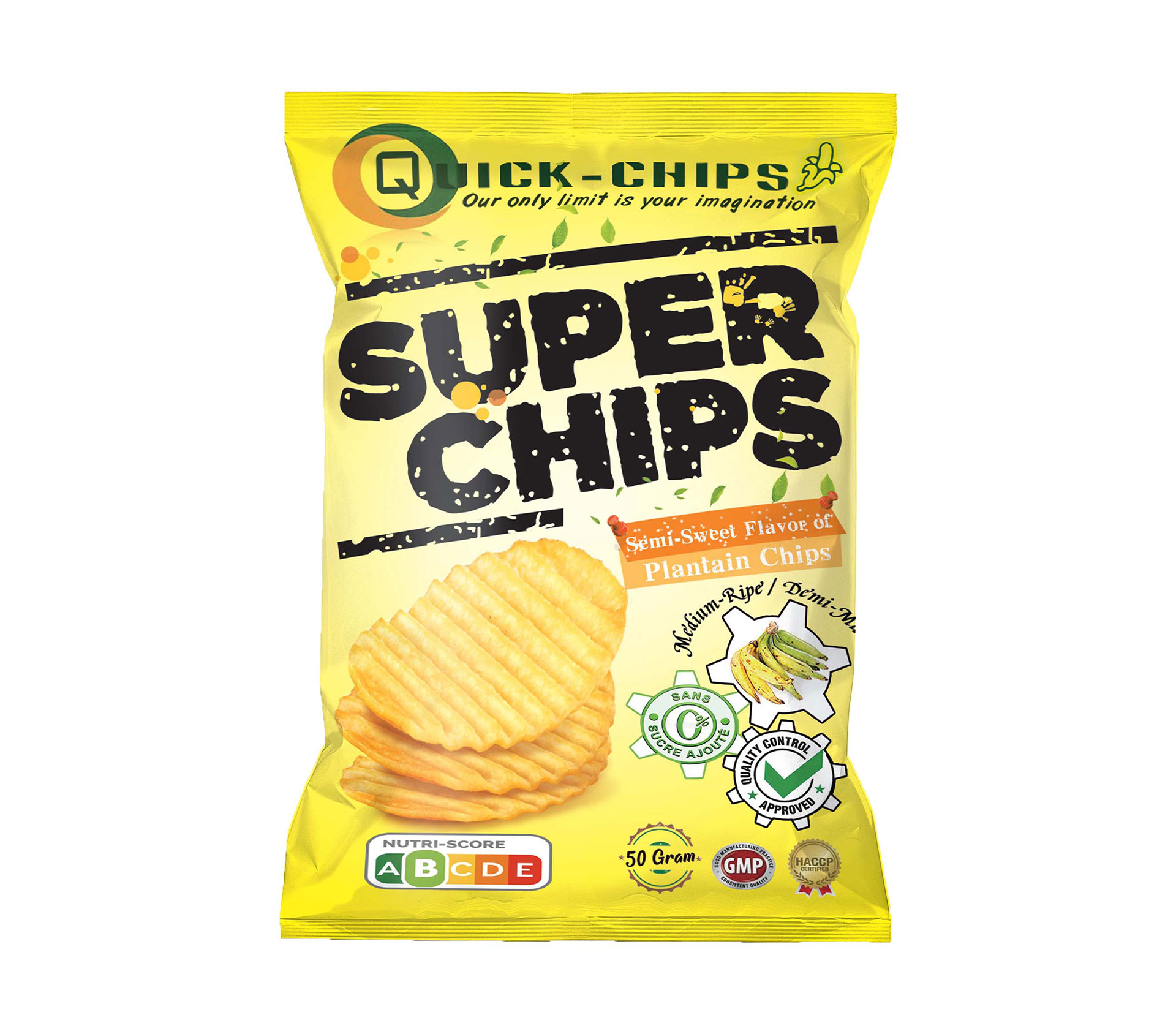 Le produit QUICK-CHIPS Super Chip's Chips De Plantain Demi-mûres sucré 50 Gram (marque QUICK-CHIPS) est identifié de manière unique par le GTIN (EAN-13) : 6176000007609, conformément aux standards GS1. Cette page constitue la fiche de référence pour l'identification normalisée de ce produit et de ses caractéristiques. La marque est la propriété de INDUSTRIES4LIFES.
