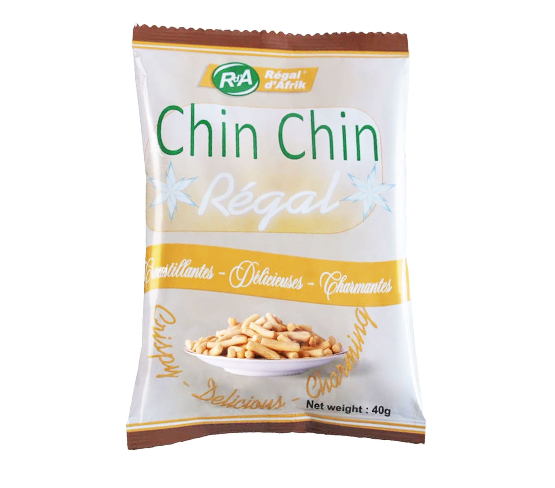 Le produit Chin chin Régal croquettes à base de farine de plantain et de blé 40 Gram (marque Chin chin Régal) est identifié de manière unique par le GTIN (EAN-13) : 6176000045403, conformément aux standards GS1. Cette page constitue la fiche de référence pour l'identification normalisée de ce produit et de ses caractéristiques. La marque est la propriété de REGAL D'AFRIK SARL.