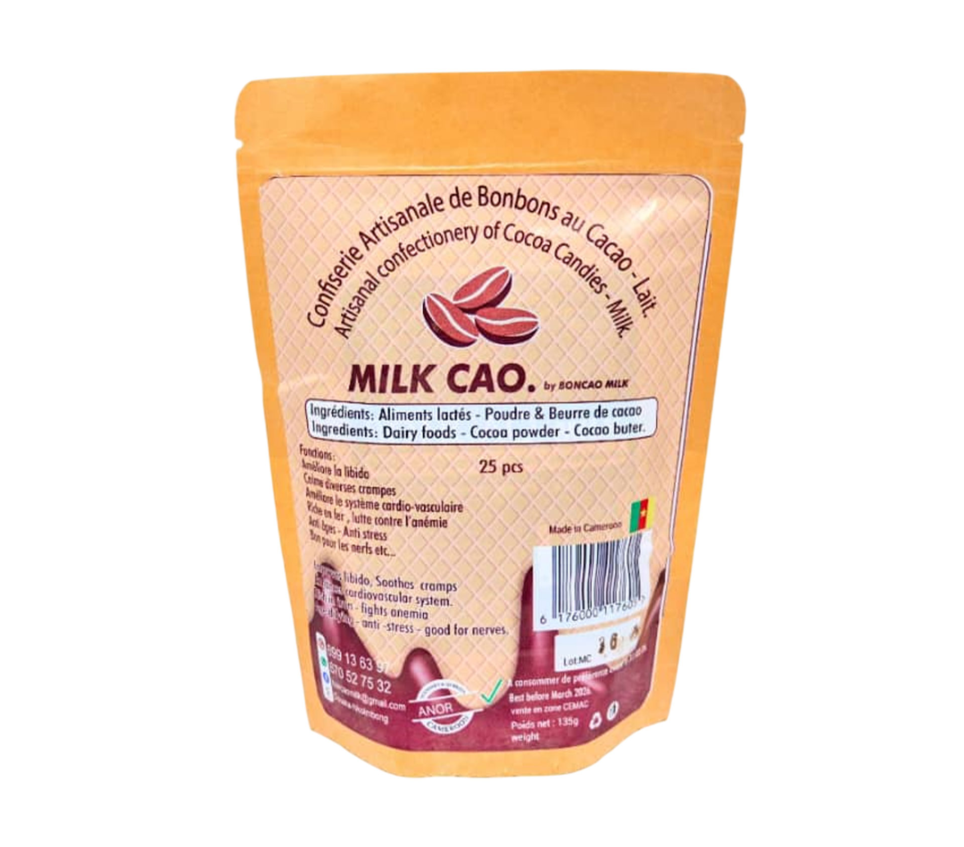 Le produit BONCAO MILK Milk Cao 25 piece (marque BONCAO MILK) est identifié de manière unique par le GTIN (EAN-13) : 6176000117650, conformément aux standards GS1. Cette page constitue la fiche de référence pour l'identification normalisée de ce produit et de ses caractéristiques. La marque est la propriété de BONCAO MILK.