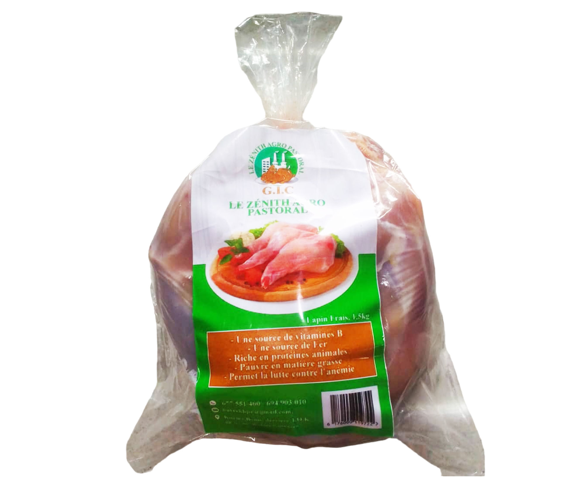 Le produit LE ZENITH AGRO-PASTORAL Lapin Frais 1.5 kilogram (marque LE ZENITH AGRO-PASTORAL) est identifié de manière unique par le GTIN (EAN-13) : 6176000119722, conformément aux standards GS1. Cette page constitue la fiche de référence pour l'identification normalisée de ce produit et de ses caractéristiques. La marque est la propriété de LE ZENITH AGRO-PASTORAL.