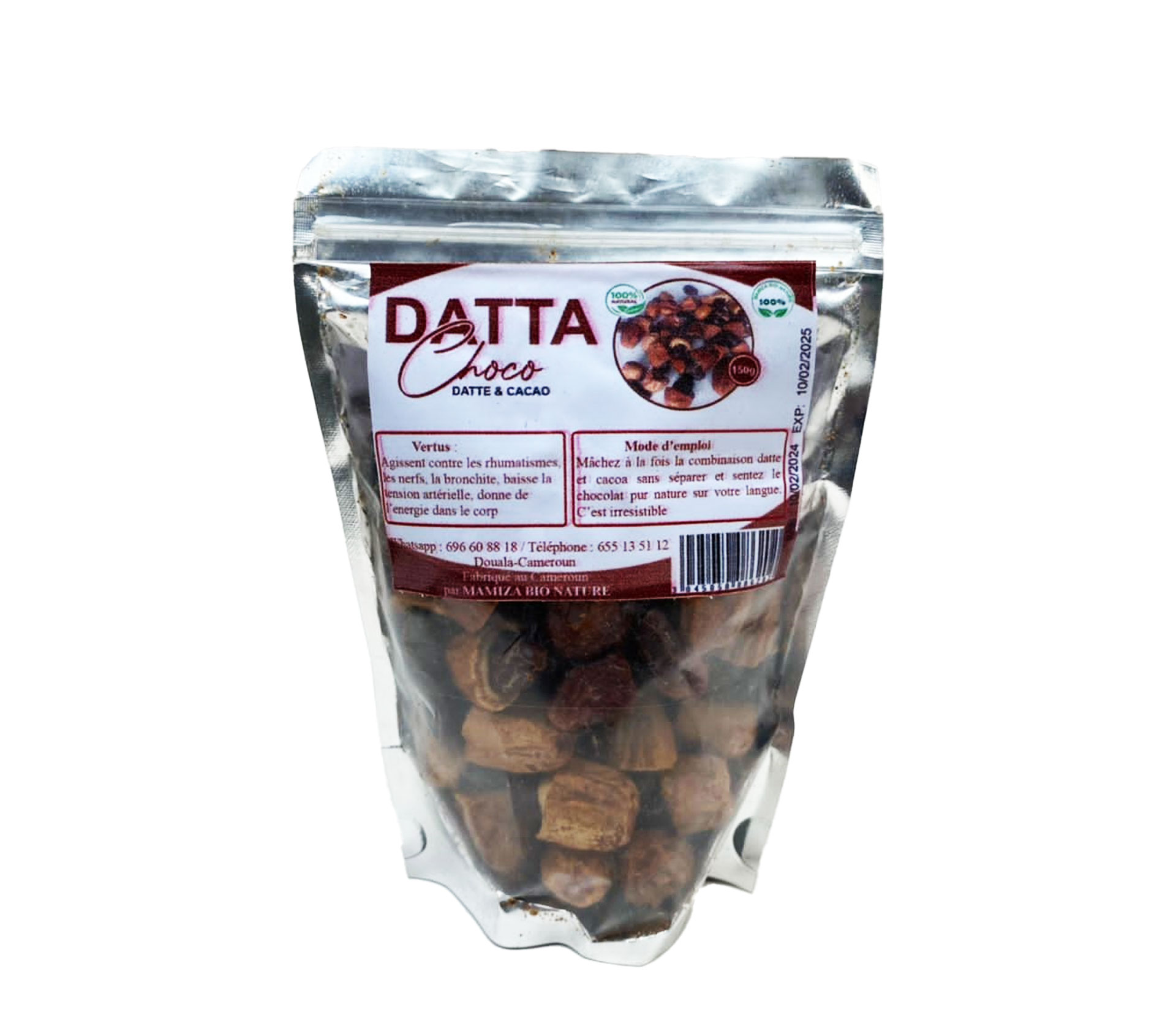 Le produit DATTA CHOCO Fruit Séchés a La Datte et Au Cacao 150 Gram (marque DATTA CHOCO) est identifié de manière unique par le GTIN (EAN-13) : 6176000121107, conformément aux standards GS1. Cette page constitue la fiche de référence pour l'identification normalisée de ce produit et de ses caractéristiques. La marque est la propriété de MAMIZA BIO NATURE.