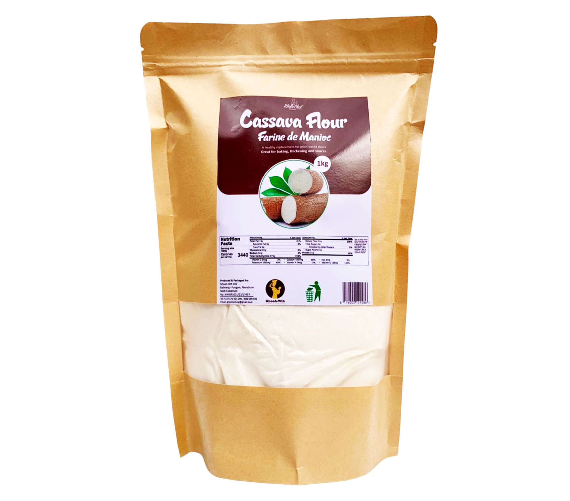Le produit GHOOH WIH CIG Cassava Flour 1 Kilogram (marque GHOOH WIH CIG) est identifié de manière unique par le GTIN (EAN-13) : 6176000129486, conformément aux standards GS1. Cette page constitue la fiche de référence pour l'identification normalisée de ce produit et de ses caractéristiques. La marque est la propriété de GHOOH WIH CIG.