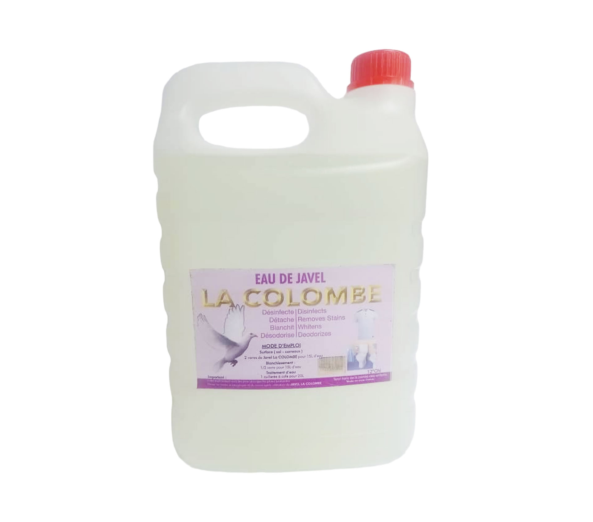 Le produit LA COLOMBE Eau De Javel 5 Litre (marque LA COLOMBE) est identifié de manière unique par le GTIN (EAN-13) : 6177000013881, conformément aux standards GS1. Cette page constitue la fiche de référence pour l'identification normalisée de ce produit et de ses caractéristiques. La marque est la propriété de VOLONTÉ DIVINE COOP-CA.