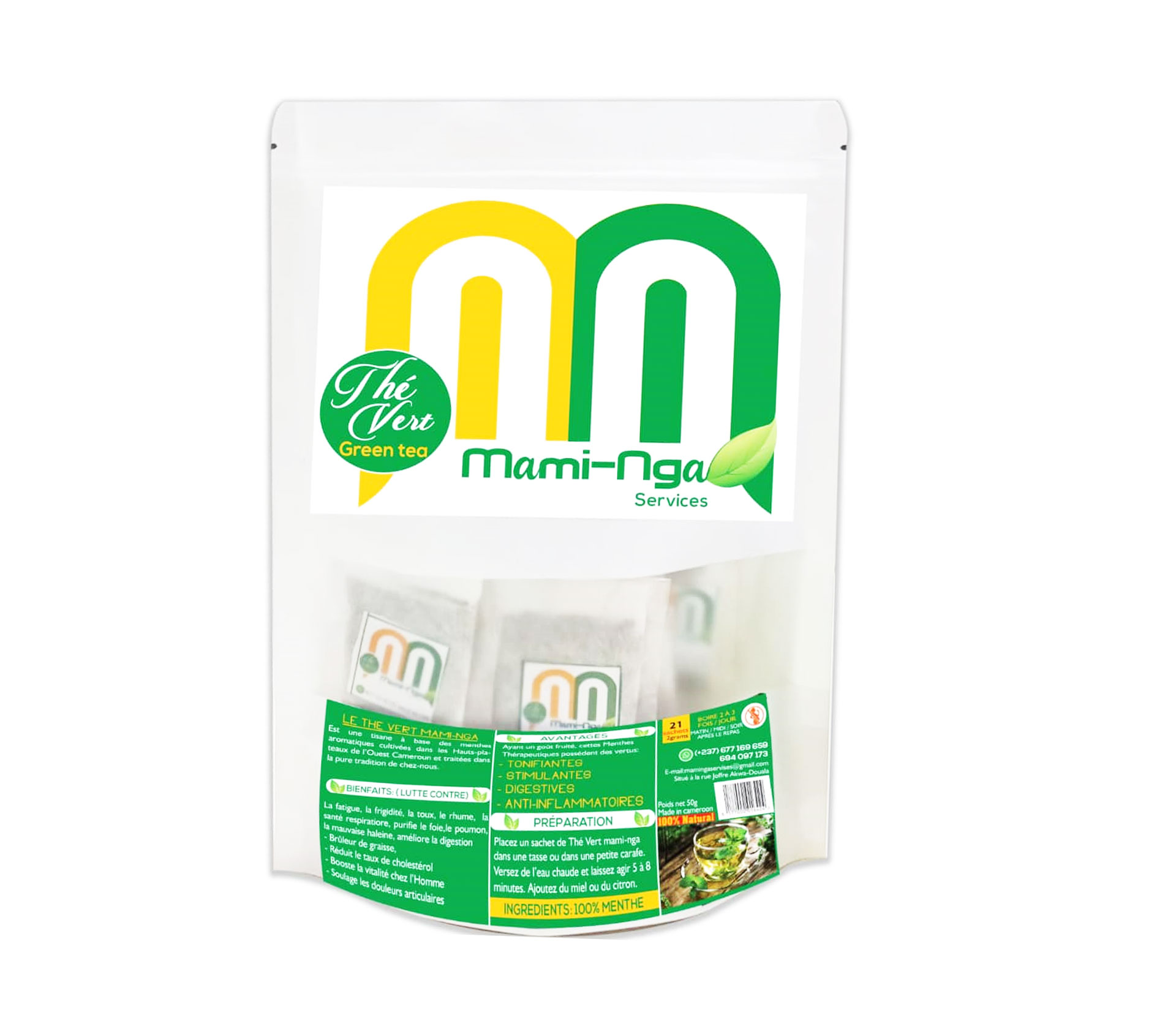 Le produit MAMI-NGA SERVICES Thé Vert Menthe 50 Gram (marque MAMI-NGA SERVICES) est identifié de manière unique par le GTIN (EAN-13) : 6177000016424, conformément aux standards GS1. Cette page constitue la fiche de référence pour l'identification normalisée de ce produit et de ses caractéristiques. La marque est la propriété de MAMI-NGA SERVICES.
