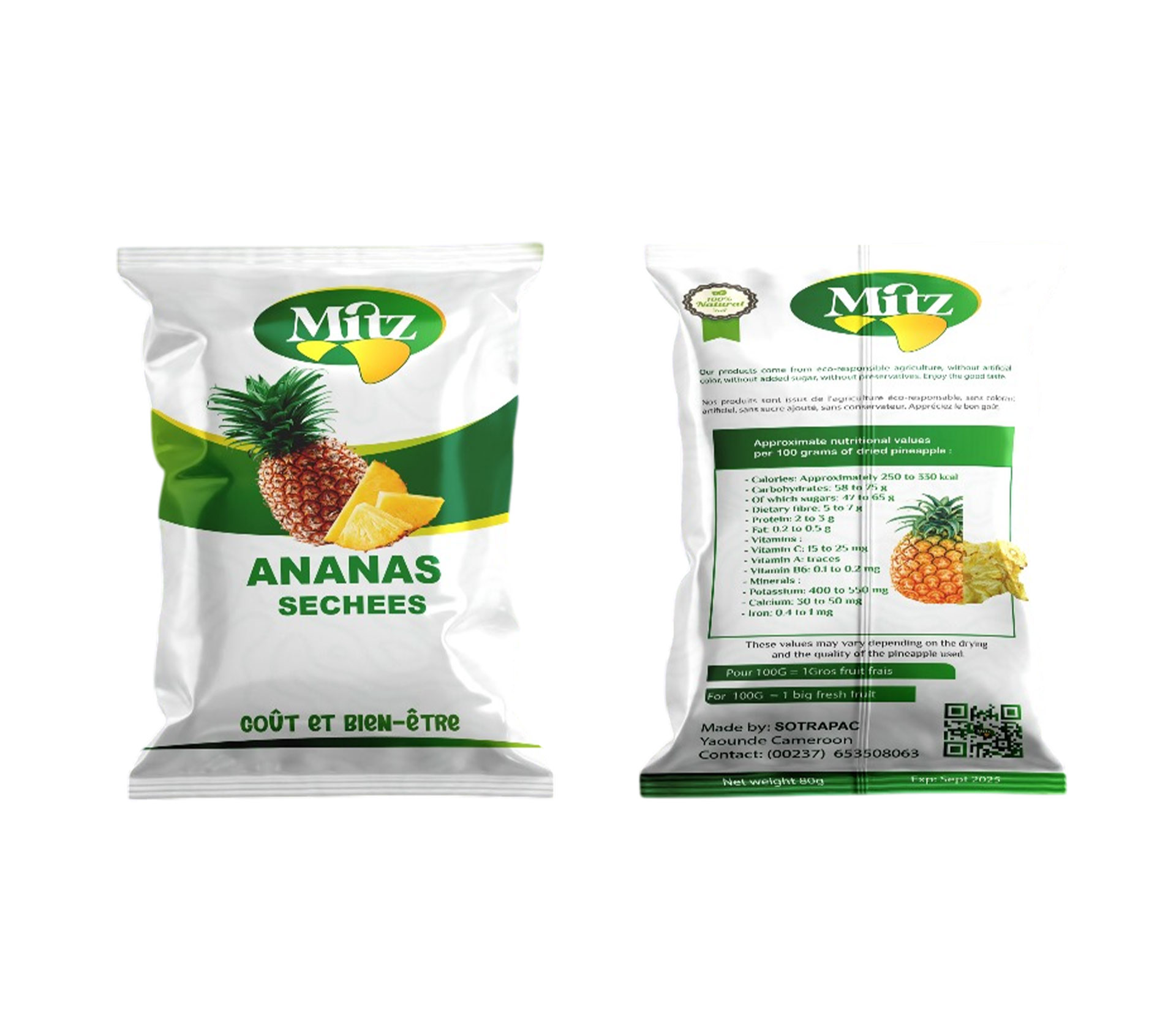 Le produit MITZ Fruits Séchés Ananas 40 gram (marque MITZ) est identifié de manière unique par le GTIN (EAN-13) : 6177000018671, conformément aux standards GS1. Cette page constitue la fiche de référence pour l'identification normalisée de ce produit et de ses caractéristiques. La marque est la propriété de SOTRAPAC SARL.