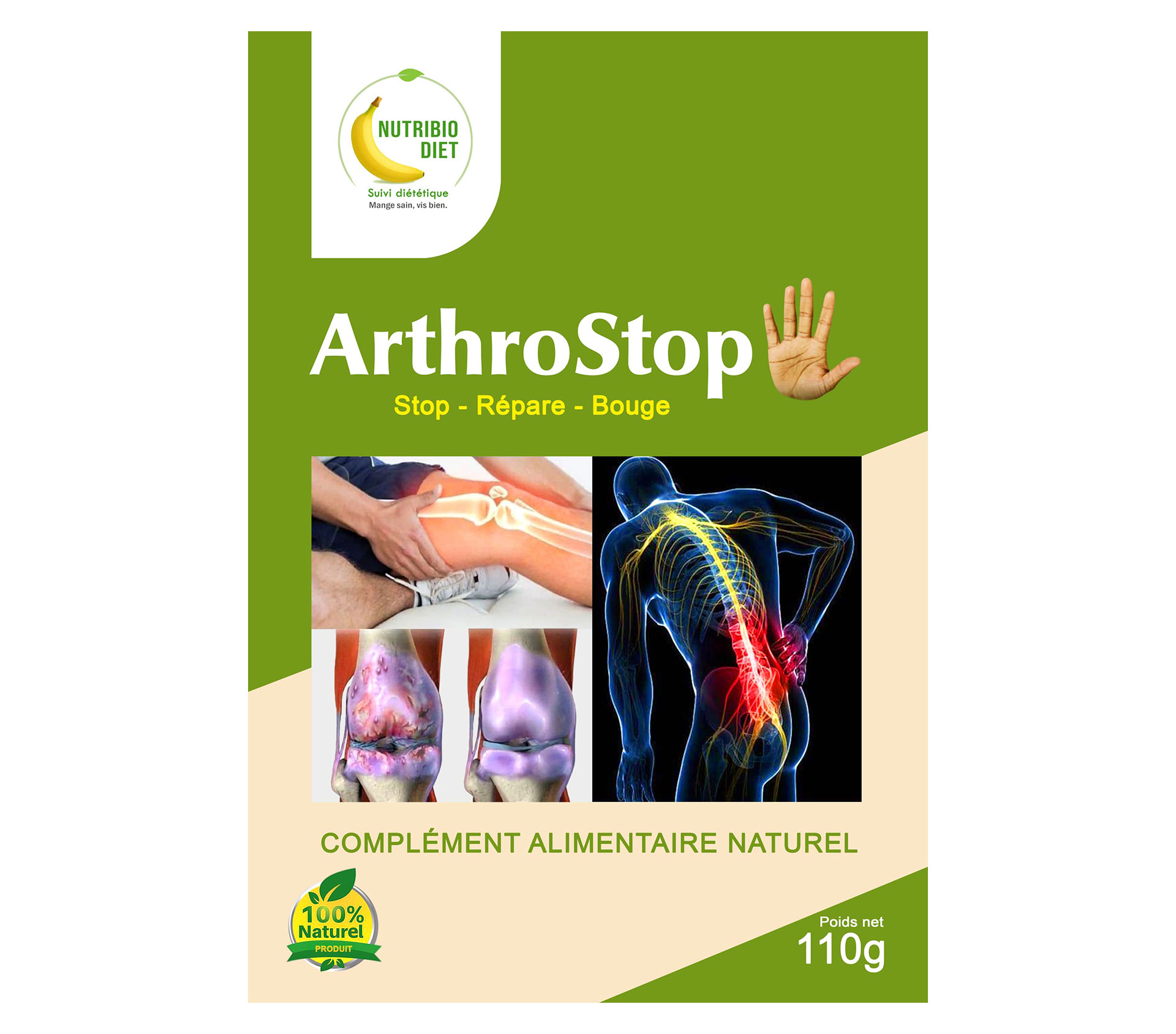 Le produit NUTRIBIODIET ArthroStop 110 gram (marque NUTRIBIODIET) est identifié de manière unique par le GTIN (EAN-13) : 6177000019463, conformément aux standards GS1. Cette page constitue la fiche de référence pour l'identification normalisée de ce produit et de ses caractéristiques. La marque est la propriété de NUTRIBIODIET.