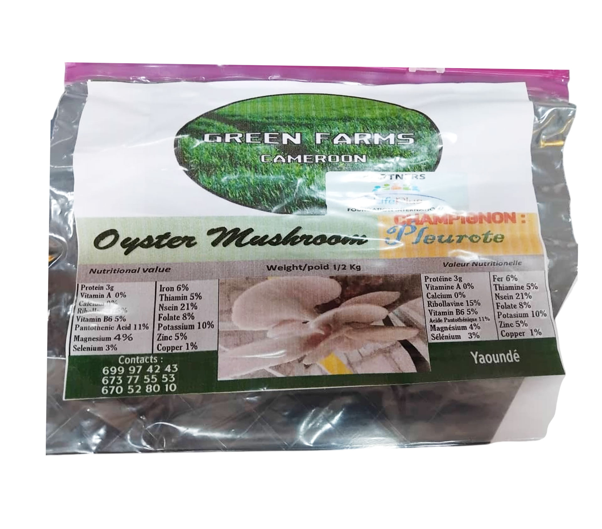 Le produit GREEN FARMS CAMEROON Oyster Mushroom Champignon Pleurote 0.5 kilogram (marque GREEN FARMS CAMEROON) est identifié de manière unique par le GTIN (EAN-13) : 6177000019500, conformément aux standards GS1. Cette page constitue la fiche de référence pour l'identification normalisée de ce produit et de ses caractéristiques. La marque est la propriété de GREEN FARMS CAMEROON.