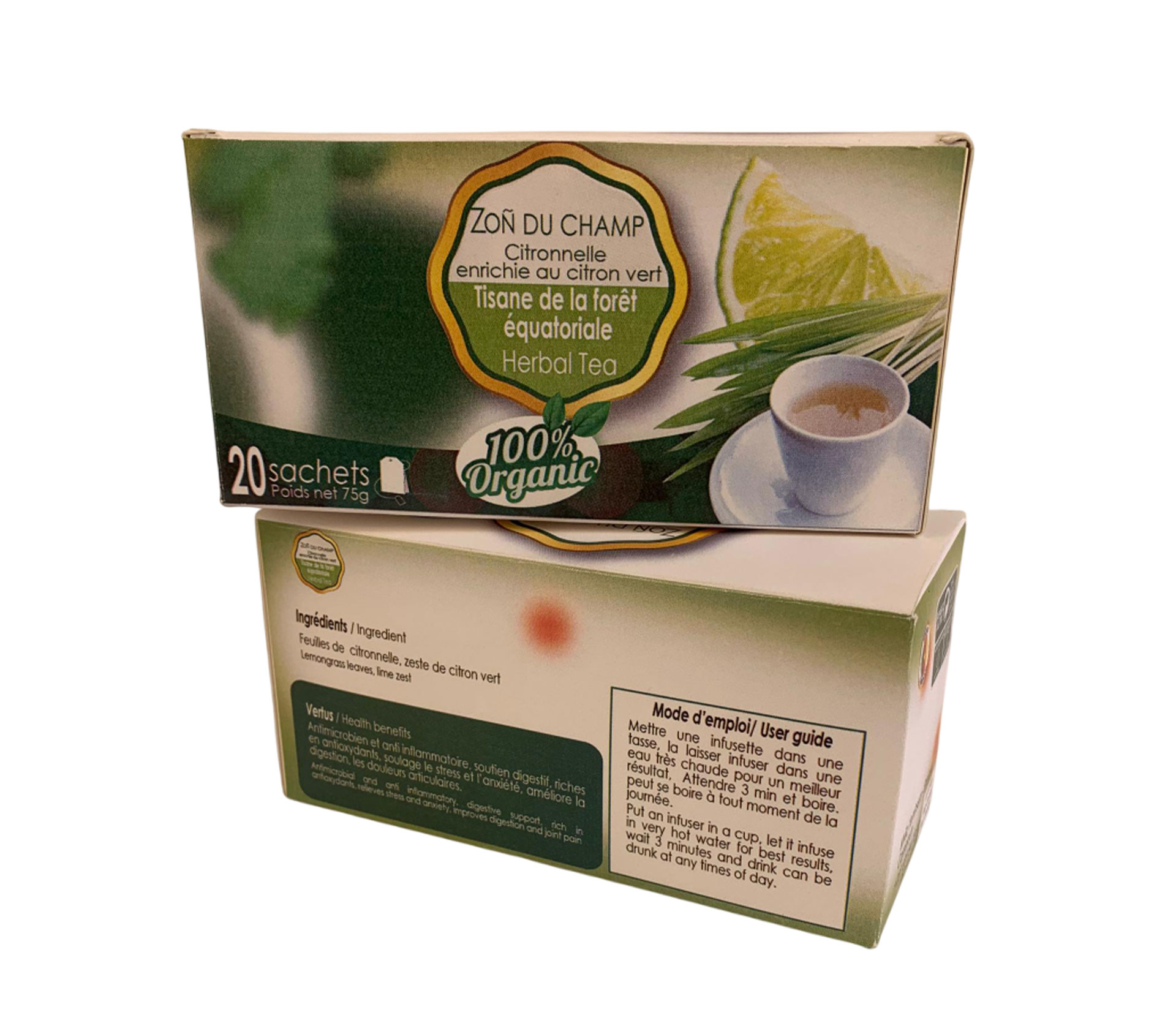 Le produit GIC AFMY Zoñ Du Champ Citronnelle Enrichie Au Citron Vert 20 Sachets 75 gram (marque GIC AFMY) est identifié de manière unique par le GTIN (EAN-13) : 6177000023187, conformément aux standards GS1. Cette page constitue la fiche de référence pour l'identification normalisée de ce produit et de ses caractéristiques. La marque est la propriété de KTMS Foods sarl.